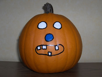 Als erstes werden mit einem weißen Edding die Augen und Zähne gemalt |
