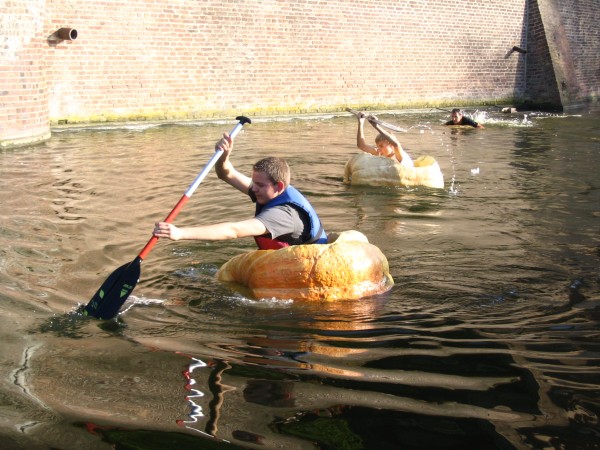 Ein besonderes Erlebnis ist auch eine Kürbisregatta. Dazu werden die Kürbisse ausgehöhlt und dann zu Wasser gelassen. Die ausgehöhlten Kürbisse schwimmen natürlich und können auch - vorausgesetzt sie sind groß genug - einen Menschen in sich beherbergen. Allerdings hat die Erfahrung gezeigt, dass diese Kürbisboote nicht sehr gut im Wasser liegen und ein guter Gleichgewichtssinn erforderlich ist. Trotzdem ist es ein sehr schöner Spaß, den Benedikt Hülsmann auch schon ein paar Mal in der Gräfte der Burg Konradsheim in Erftstadt mitgemacht hat.